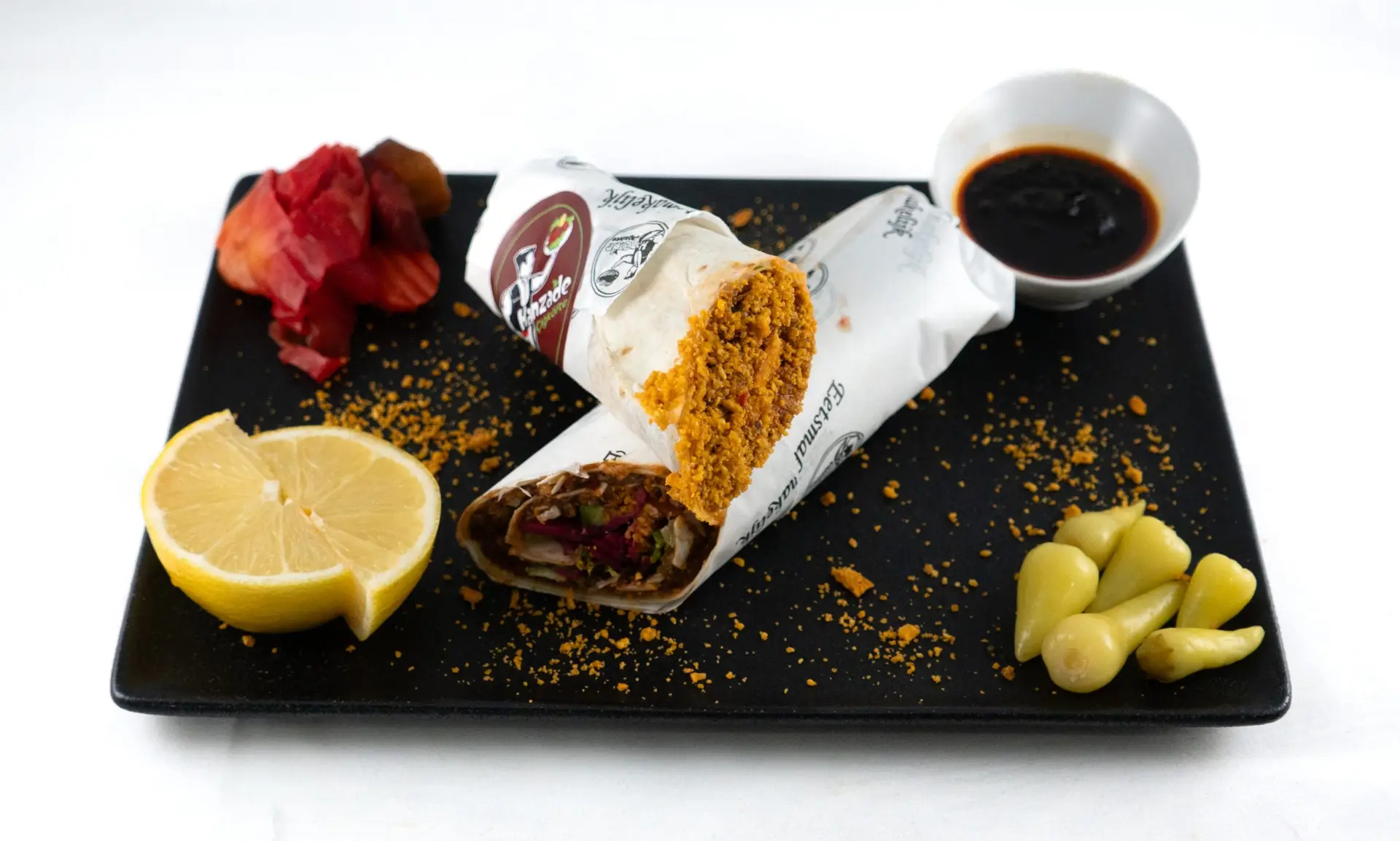 Krokante dürüm gevuld met smeuïge cigkofte: een smaakvolle crunch bij elke hap!