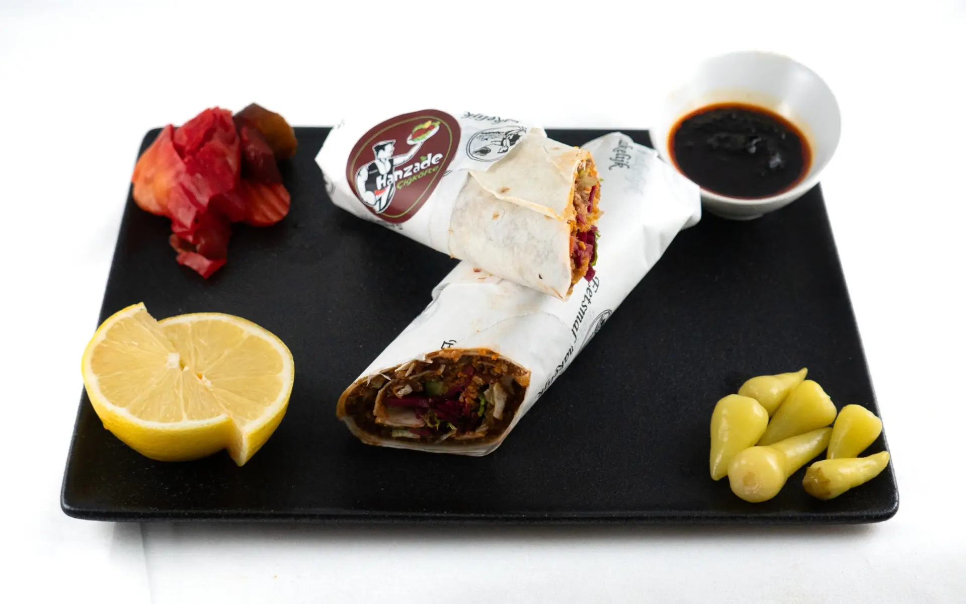 Cigkofte gewikkeld in een zachte wrap. Een voedzame en smaakvolle maaltijd voor onderweg.